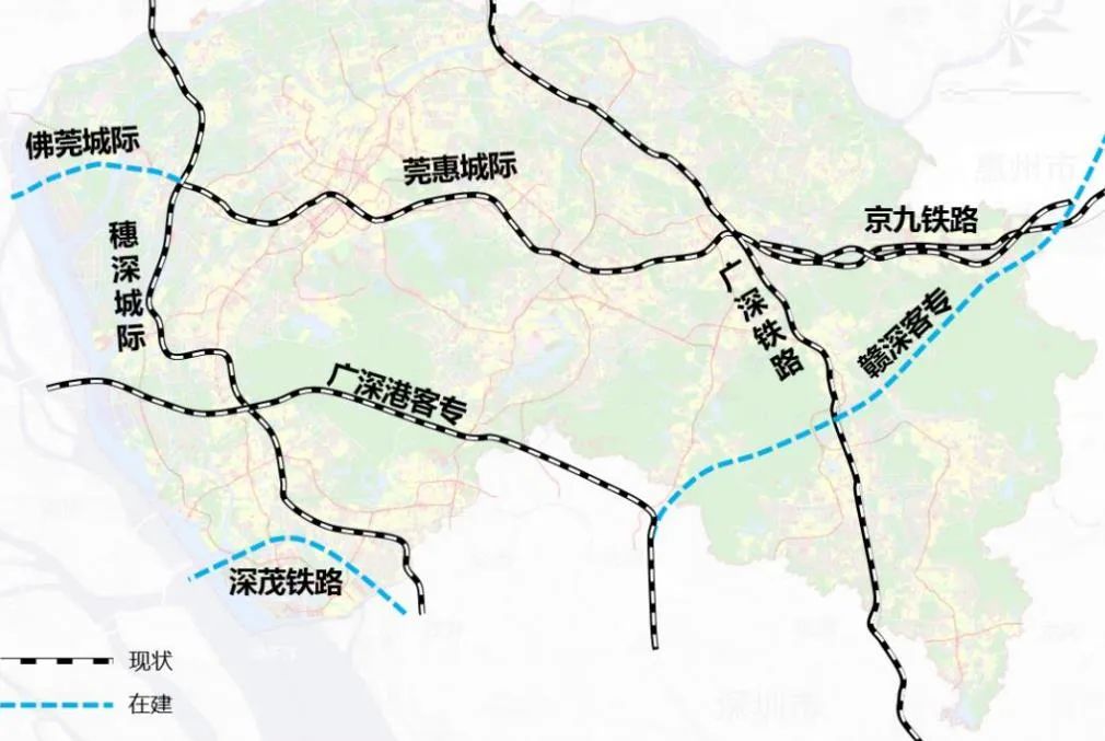 东莞市现状及在建铁路和城际布局图