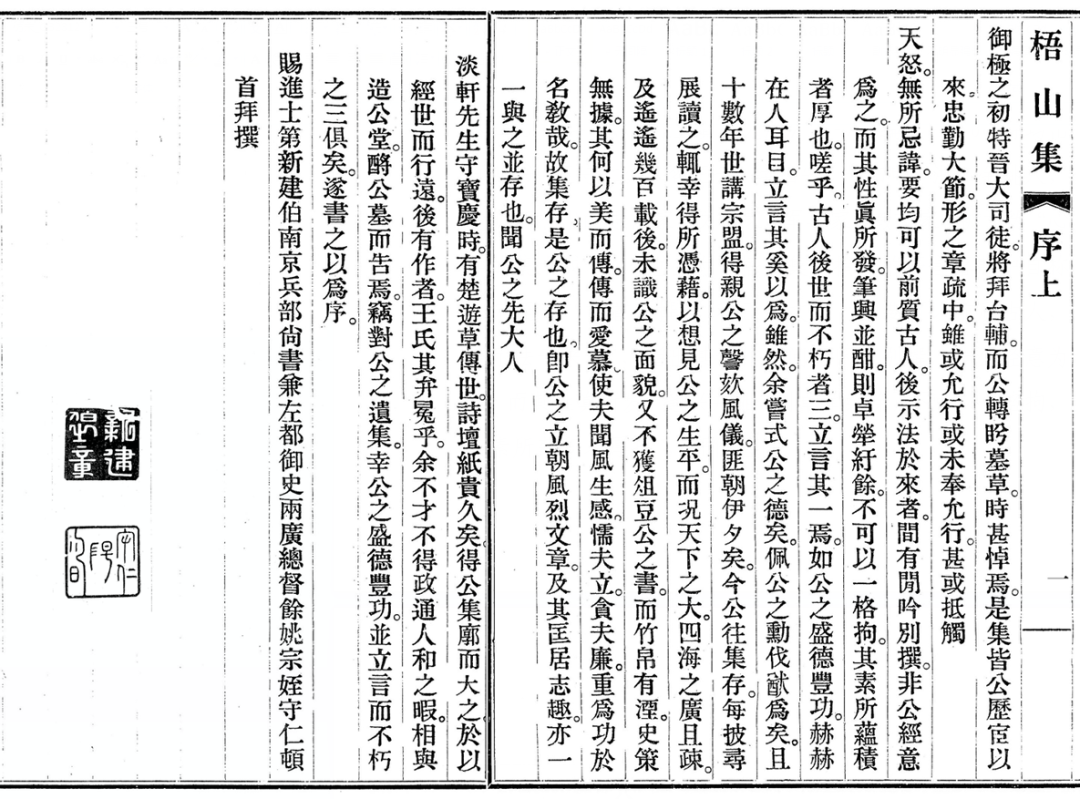 《梧山集》是王缜去世后由其子王弘久辑录而成,因王缜在世时曾与王阳明同朝为官,王阳明于王缜交情甚好。《梧山集》辑录完毕后,王弘久邀请时任两广总督王守仁撰序。王守仁,本名王云,字伯安,号阳明,浙江余姚人,是明朝杰出的思想家、文学家、军事家、教育家,被誉为“心学的集大成者”,他在为《梧山集》撰写的序言落款中自称“宗侄”,“顿首拜撰”,称王缜文章“均要可以前质古人,后示法于来者”,评价王缜在“立德、立言、立功”三不朽。《梧山集》,此书有明代嘉靖、清乾隆、光绪及民国四个版本,此次经过整理出版的是民国版。该书共有二十卷,卷一至卷十,是“奏疏”,有66篇;卷一一至一二,“序文”,有32篇;卷一三,是“引、跋、箴、铭”,共11篇;卷一四至卷二o,是诗,共有400余首。可以说诗文体裁多样,除前面10卷与朝政相关的奏疏体现了王缜扎实的行政公文水平,体现了王缜勤政为民的宏图才略;其余卷的“序、引、跋、箴、铭、诗”等体现了作者扎实的文字功底、厚实的人文素养,尤其书中的400余首五言、七言律诗,无论是行旅思情,还是日常叙事,于深情送别、写景状物之间,处处体现了作者的真性情。故王阳明也在该书的《序》中评述王缜的诗是“性真所发,笔兴并酣,则卓荦纡馀”。