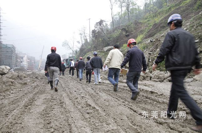 ▲2008年,东莞援建工作小组成员在援建工地