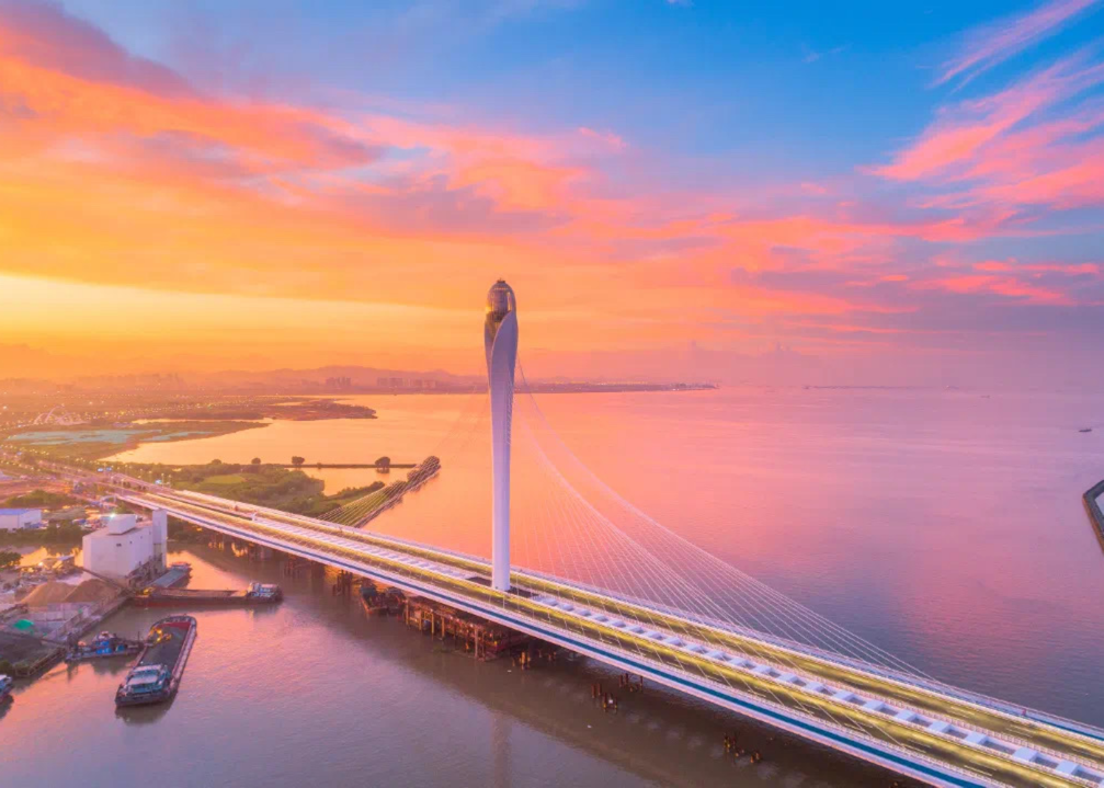 大桥刚通车,就成了网红桥。大家抢先打卡:漫步,骑行,沿途磨碟河入海口的风光一览无遗;拍摄日落,吹着滨海夏夜晚风,远眺广州南沙和深圳前海。