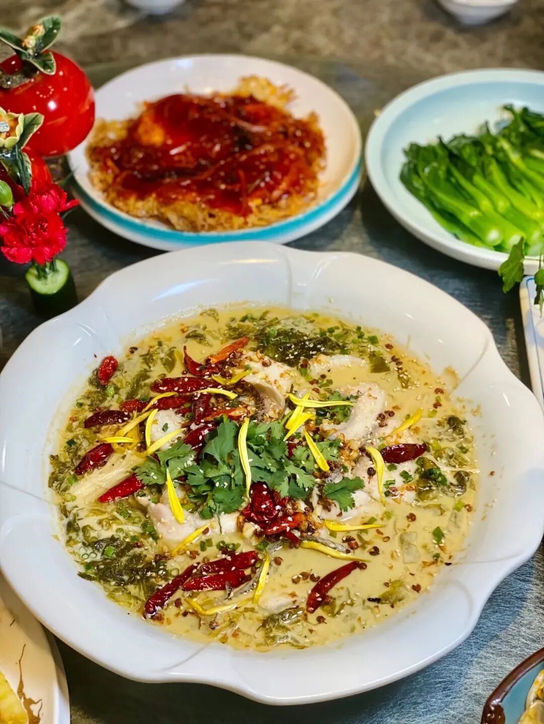比脸还大盆的酸菜鱼怎能错过,鱼要每天新鲜送到店里的生鱼,而且只用鱼背上的肉,无骨无刺又鲜嫩!