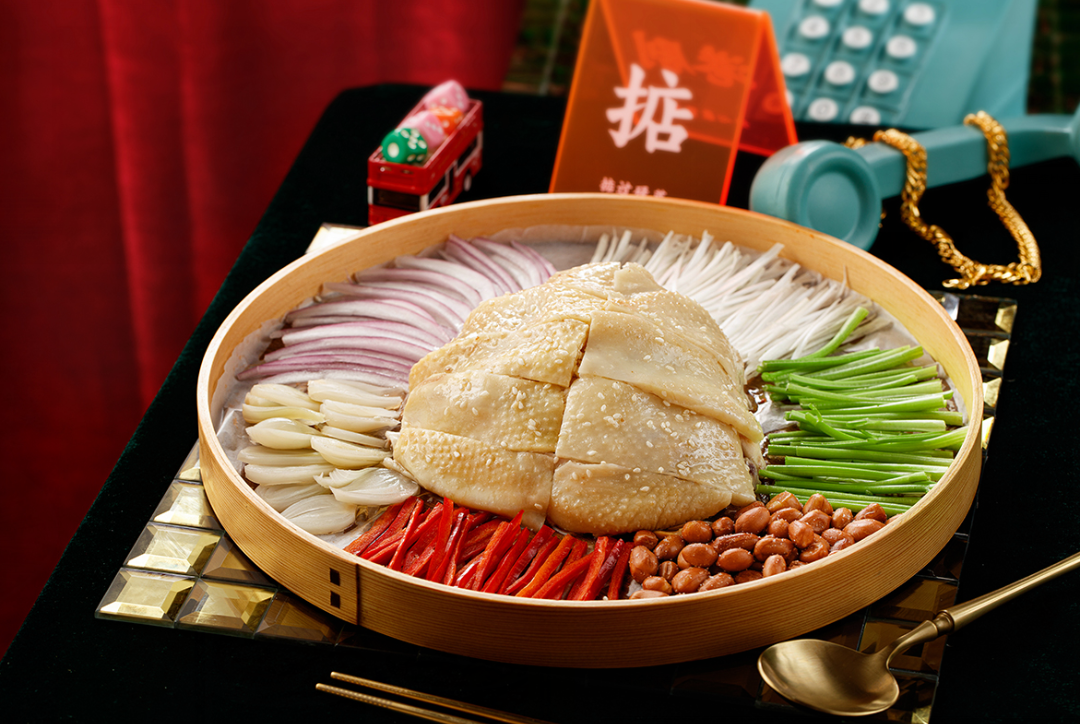精挑细选的走地鸡,只只都饱满肥美!散养足天才能上桌。用白切的方式,将整只鸡烫至骨边肉微微泛红,锁住了鸡肉原始的甘腴丰美,切成小块后摆盘上桌!