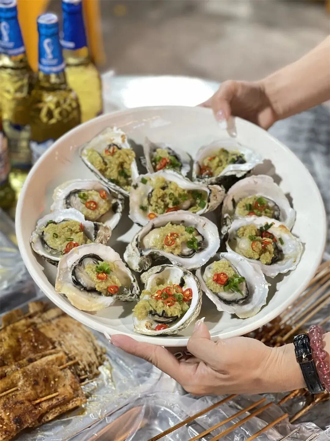 烤好的生蚝,底部堆积了浓郁的汁水